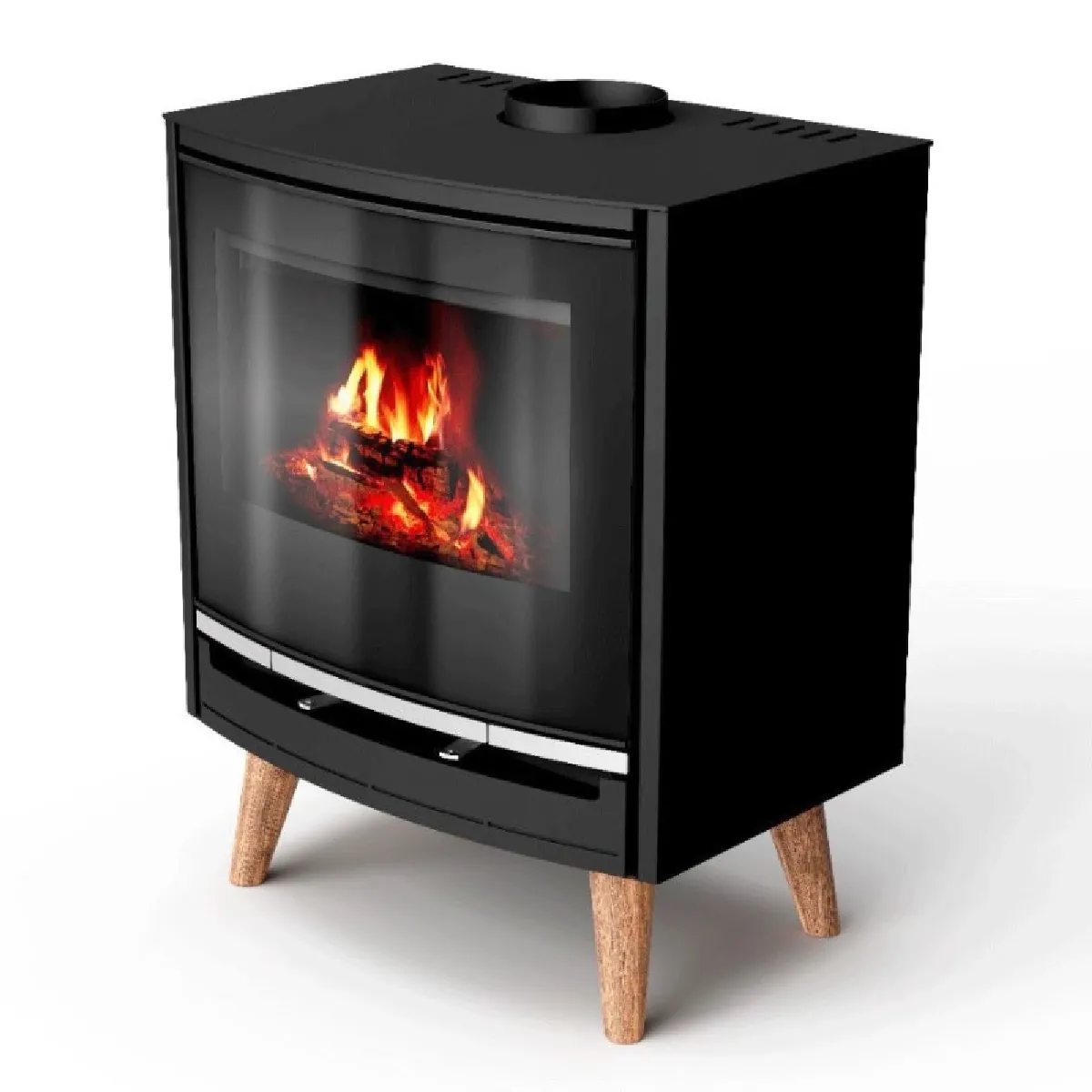OFELIA : Le design inimitable de sa vitre sérigraphiée et pieds en bois Sortie des fumées par le dessus (diamètre 150), gain de place assuré. Fonctionne avec l'air extérieur Réglage air primaire et secondaire Profitez du confort du chauffage au bois. SI VOUS AVEZ BESOIN DE CONSEILS OU DE MATÉRIEL SUPPLÉMENTAIRE (CONDUITS) POUR FINALISER VOTRE INSTALLATION CONTACTEZ LE : 04 23 36 01 08. Ses Avantages : Sortie des fumées sur le dessus : permet de rapprocher le poêle du mur tout en respectant la distance de sécurité. Vitre sérigraphiée. Ressors de porte pour fermeture semi automatique Intérieur en Vermiculite. Prise d'air ambiant : le réglage d'entrée d'air s'opère grâce à une poignée située en dessous de la porte vitrée. Le foyer est prévu pour de grandes bûches de 40cm.